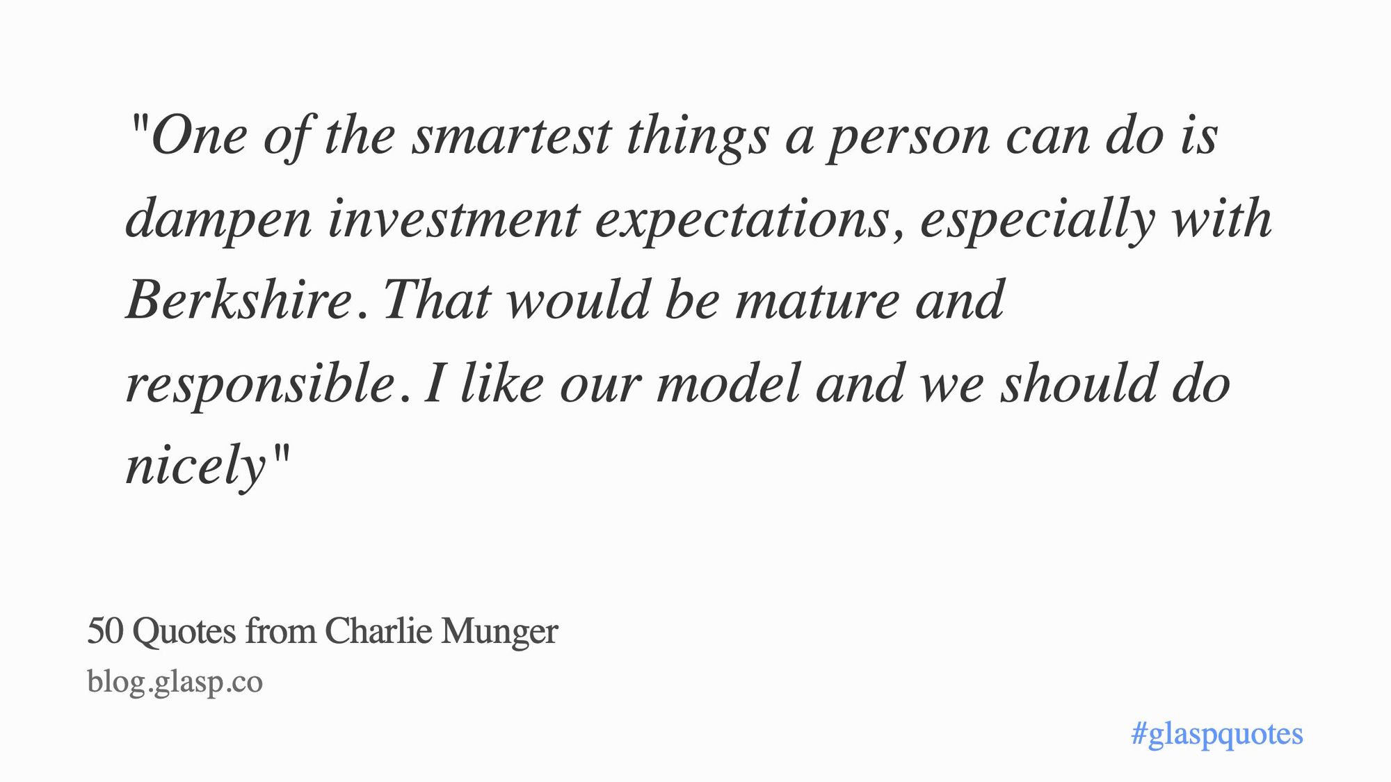 24. "One of the smartest things a person can do is dampen investment expectations, especially with Berkshire. That would be mature and responsible. I like our model and we should do nicely"