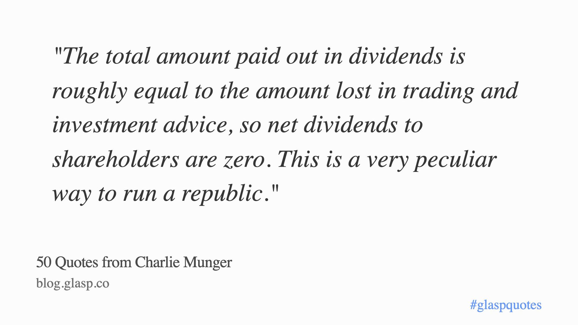 37. "The total amount paid out in dividends is roughly equal to the amount lost in trading and investment advice, so net dividends to shareholders are zero. This is a very peculiar way to run a republic."