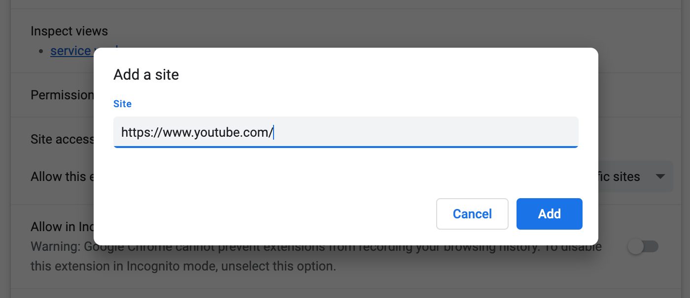 6. Add "https://www.youtube.com/" and "https://chat.openai.com/"