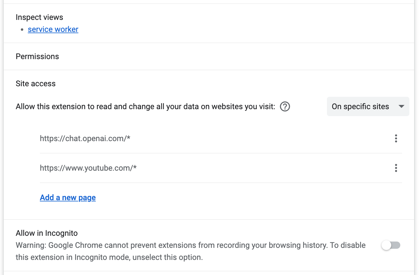 After v1.0.7, we updated the site access permission from "YouTube and ChatGPT" to all urls to allow users to summarize any webpages and PDFs.